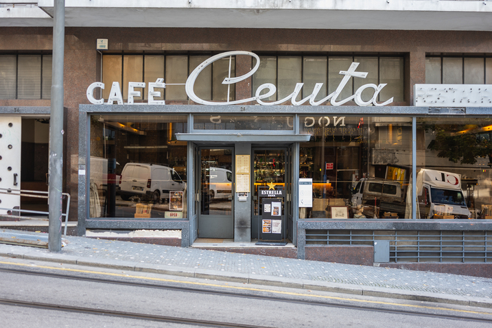 Inaugurado em julho de 1953, o Café Ceuta afirma-se como um dos espaços mais emblemáticos da Baixa do Porto. Situado na Rua de Ceuta, ocupa um edifício projetado pelo arquiteto Carlos Neves, construído por José Ferreira dos Santos e decorado por António Coelho de Figueiredo. A sua identidade permanece ligada à elegância dos anos 50: pavimento em marmorite, paredes revestidas a Brecha da Arrábida – pedra ornamental única da região – e três vitrais de grandes dimensões que representam a partida das tropas portuguesas para a conquista de Ceuta, em 1415.