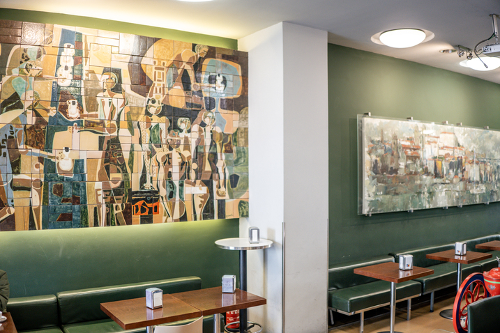 A Cafetaria é detentora de um precioso património artístico – os painéis cerâmicos da autoria de Júlio Resende ilustrativos do ciclo do café. Esta obra artística foi exibida pela primeira vez aquando da inauguração do espaço ao público, em 1963.